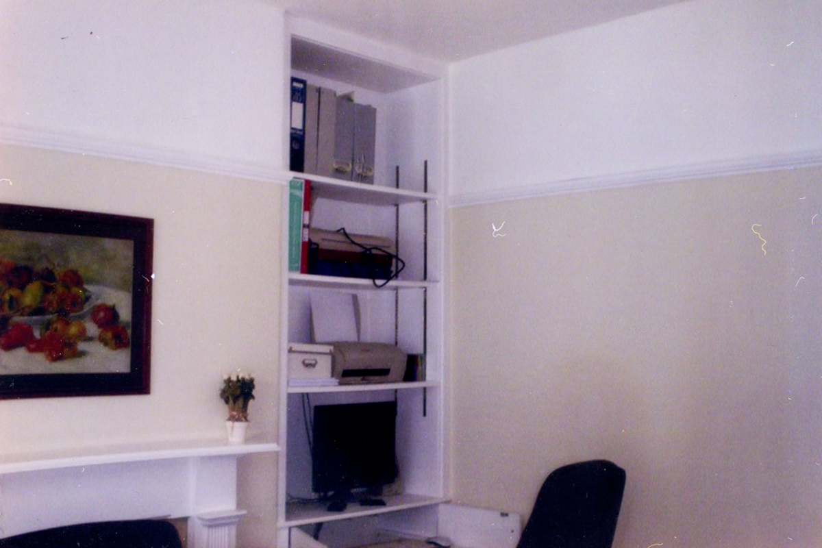 Build in storage shelving, made from 18mm MDF.